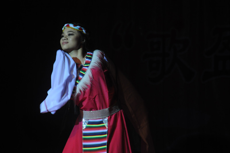 本篇章以2012级霍霞同学的藏族舞独舞《天路》结束。霍霞一身藏族服饰,随音乐翩翩起舞,柔美的舞姿给晚会带来另一番韵味。