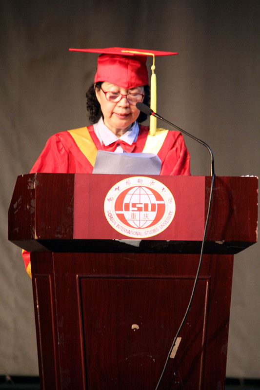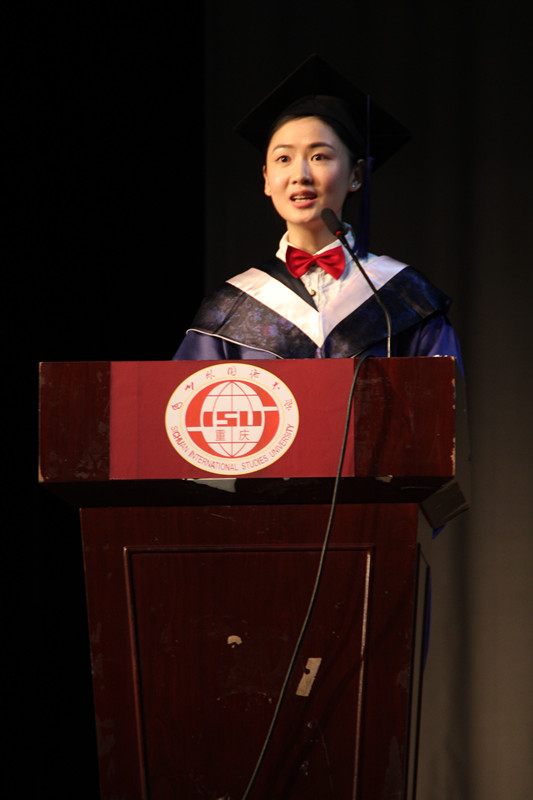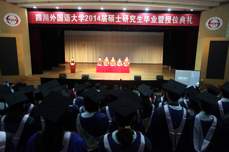 授位完毕后,毕业研究生代表万姗同学发言。她首先代表2014届全体毕业生向领导和老师们表示了感谢。她说,无论走到哪里,毕业生们都会谨记母校的教诲,秉承“团结、勤奋、严谨、求实”的川外校训和“守则、求实、开放、包容”的川外精神,脚踏实地,戒骄戒躁,为社会做出自己最大的贡献,报答母校的培养。