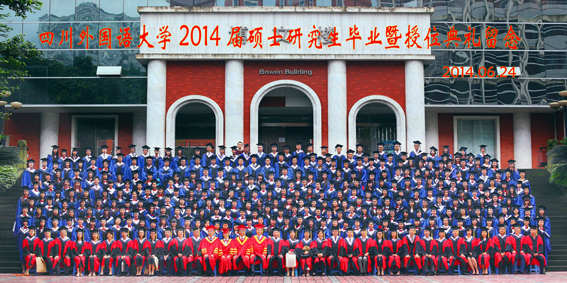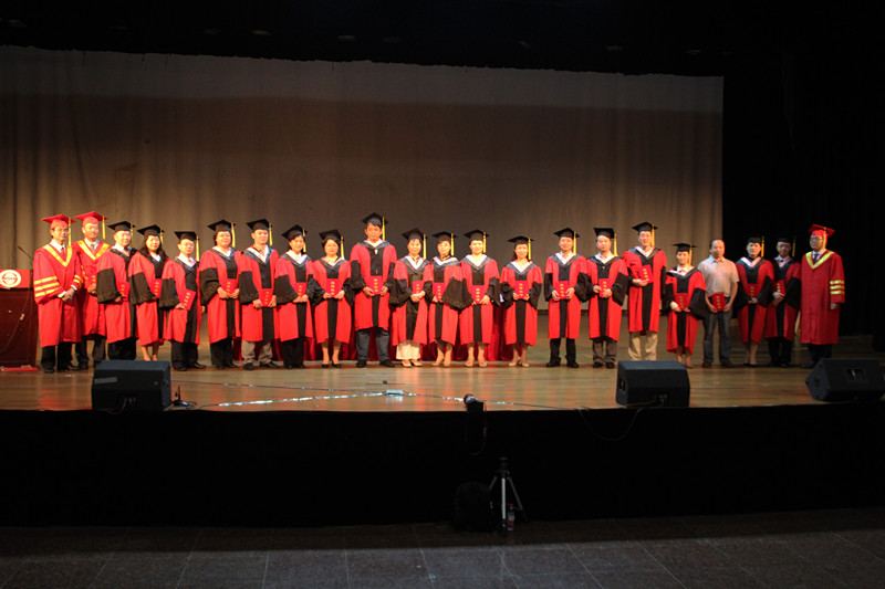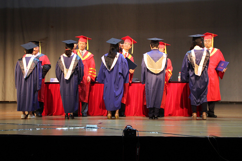 最后,在高昂的校歌声中,主持人宣布2014届硕士研究生毕业暨授位典礼结束,并安排合影留念。