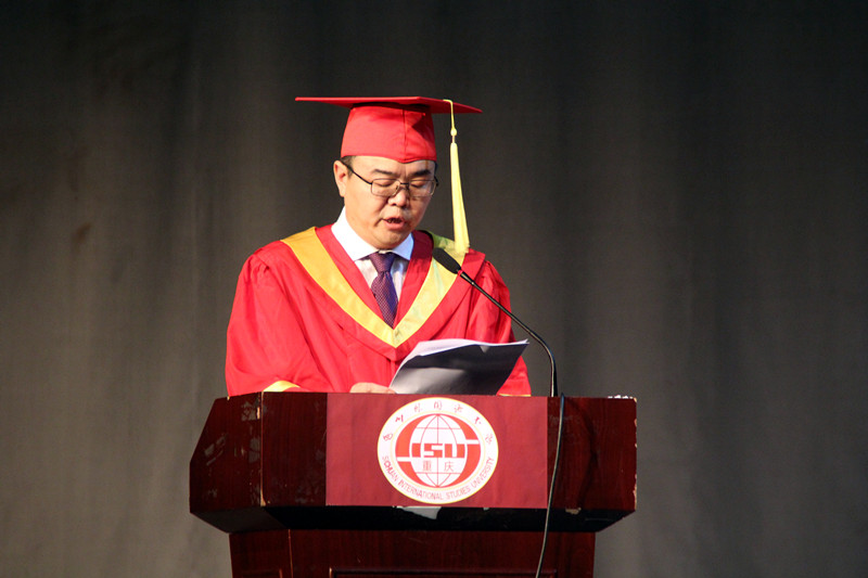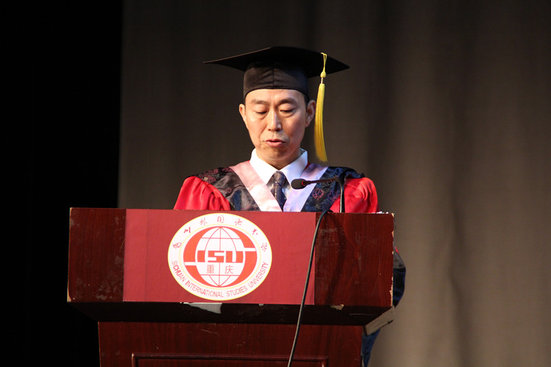 随后,校长李克勇发表了讲话。他首先代表学校党委和行政以及全体员工向毕业生表示了祝贺,向研究生指导老师、课程老师和工作人员表示了感谢。他说,经过三年的学习,他看到了同学们历经岁月磨砺后的成长与成熟。同学们是学校发展的见证者,更是参与者,为学校争得了很多荣誉。临别前夕,李校长提出了三点希望与大家共勉:第一,勿忘初心,保持本色。社会中充满了形形色色的多元碰撞和无处不在的诱惑,大家将会面临碰壁与认同、动摇与坚持、失望与希望,但切勿忘记川外教予的那颗善良、真诚的心和坚韧不拔的精神。第二,勿失梦想,保持进取。进入社会,大家或许会遭遇理想与人生的暂时搁浅,但请相信自己是那颗总会发光的出自的川外的金子,以梦为马,方能驰骋四方。第三,勿忘遗憾,保持真诚。他希望离开川外之前的同学们都能好好享受最后的校园时光,离开川外之后能“常回家看看”,别让时间与空间成为遗憾与距离产生的理由。祝愿毕业生今后都能一帆风顺,前程似锦。
