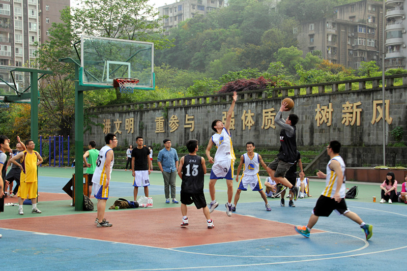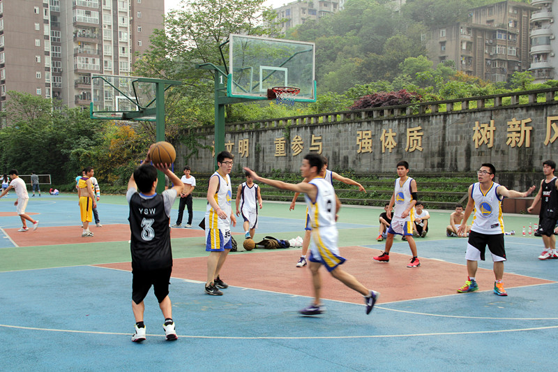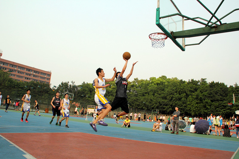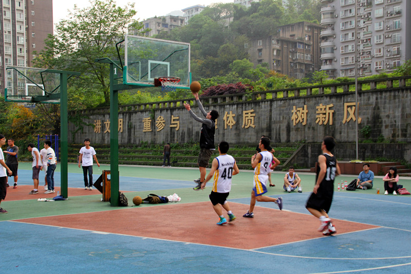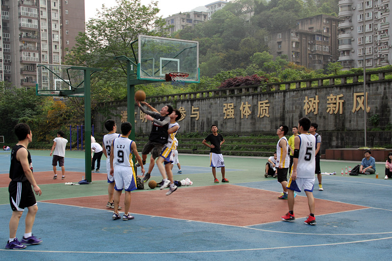 2014年4月16日下午4时30分,2014川外男篮小组赛第四场在东校区篮球场一场地举行。太阳成集团tyc122ccvip男篮对阵新闻传播学院低年级队。太阳成集团tyc122ccvip党总支副书记李金树老师,辅导员吴丹老师、朱斌老师来到现场与研院同学们一起为队员们加油助威。比赛开始后,我院男篮队员依靠流畅的进攻和积极的防守迅速拉开了比分,半场结束时,我院男篮以16:6的比分领先。下半场开始后,我院男篮延续上半场的进攻势头,张涵等队员连续投篮命中,同时在防守端也没有让对方轻易杀入篮下。整个第三节,研院男篮队员们积极的防守拼抢让对手颗粒无收,本节比赛结束时,研院以25:6的大比分领先。第四节,我院男篮没有因为领先过多而麻痹大意,他们打出了流畅的配合,无论是突破分球还是定点投篮,他们的每一次进球都能赢得场下观众的阵阵掌声。最终研院男篮以46:11的巨大优势战胜新传低年级队,赢下了整个小组赛的第三场胜利。祝愿研院男篮在接下的最后一场比赛中能够有精彩的表现,顺利入围八强赛。