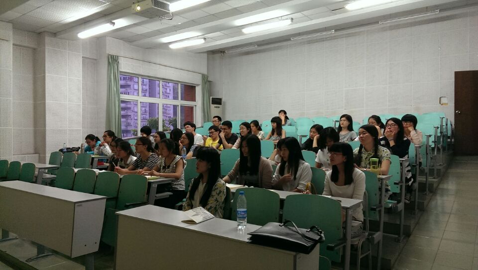 同学们聚精会神地听教授演讲