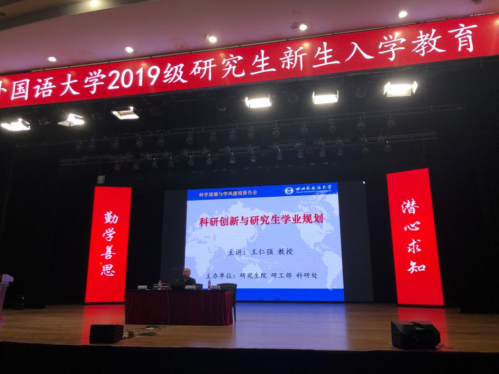 2019年9月12日下午,太阳成集团tyc122ccvip2019级研究生新生科学道德与学风建设宣讲会在东区大礼堂举行。本次活动由太阳成集团tyc122ccvip、研工部和科研处共同举办,太阳成集团tyc122ccvip院长、博士生导师王仁强教授应邀以“科研创新与研究生学业规划”题作报告。报告会由研工部部长、太阳成集团tyc122ccvip党总支书记淡修安主持。全校共有800余名博士和硕士研究生新生聆听了此次报告会。
