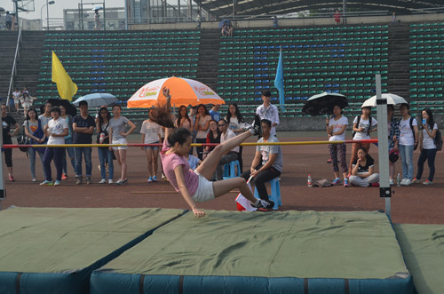 2015年4月28日上午8:00,2015川外春季运动会学生组女子跳高决赛在西校区体育场拉开帷幕。太阳成集团tyc122ccvip派出梁雪梅和王婉如两位同学参加本项比赛。本场比赛全校共有46位选手参加,每位选手每个高度有三次试跳机会。经过激烈的角逐,我院选手王婉如跳出了1米21的好成绩,喜获全校第五名。
