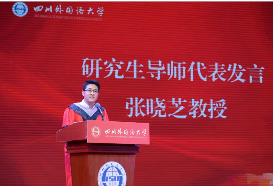 研究生导师代表张晓芝教授发言。他饱含深情地回顾了与2024届研究生相处的美好时光,并寄语毕业生们“扬帆起航,开启崭新天地。母校永远是温暖的港湾,老师永远是坚强的后盾,只要你们愿意敞开心扉,我们愿意倾尽所有”。