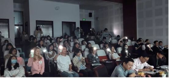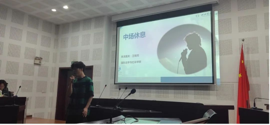 在前5为选手演讲结束的中场休息时间,国际法学与社会学院的王皓民同学为大家演唱了周杰伦的两首歌曲《退后》和《七里香》,现场观众纷纷开启手机的闪光灯与其进行互动,享受着这场视听盛宴。