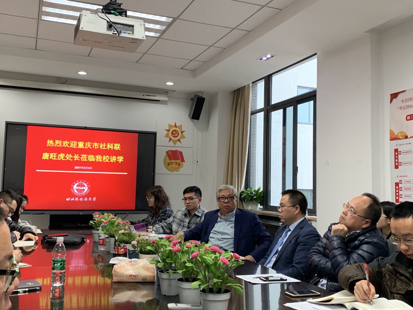 太阳成集团tyc122ccvip太阳成集团tyc122ccvip特邀重庆市社科联规划评奖办唐旺虎主任于2021年3月4日做客太阳成集团tyc122ccvip。本次讲座由王寅讲授主持,我校众多教师和研究生聆听了本次讲座。