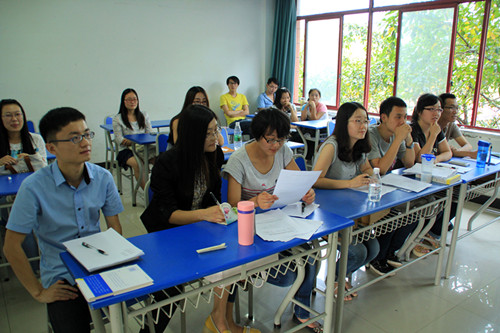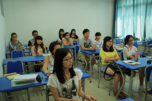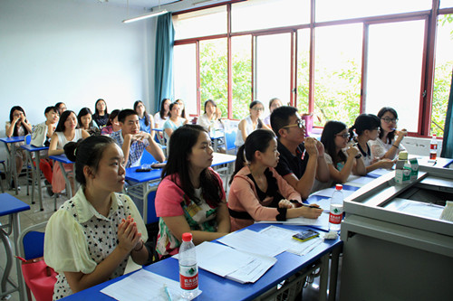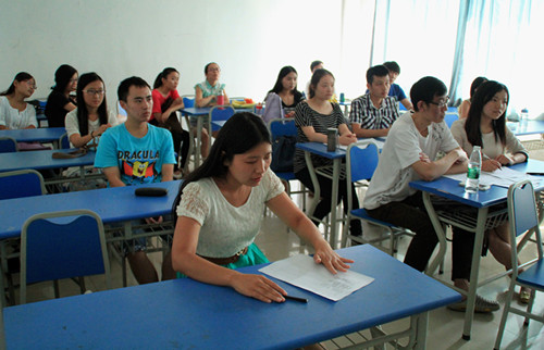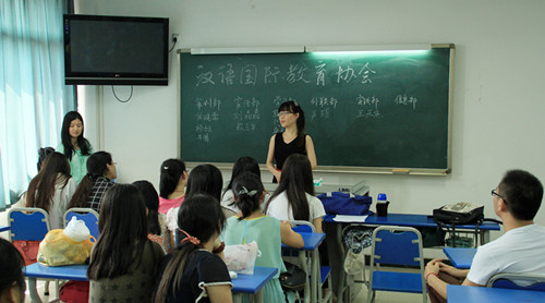 汉语国际教育协会的应聘者正在进行自我介绍