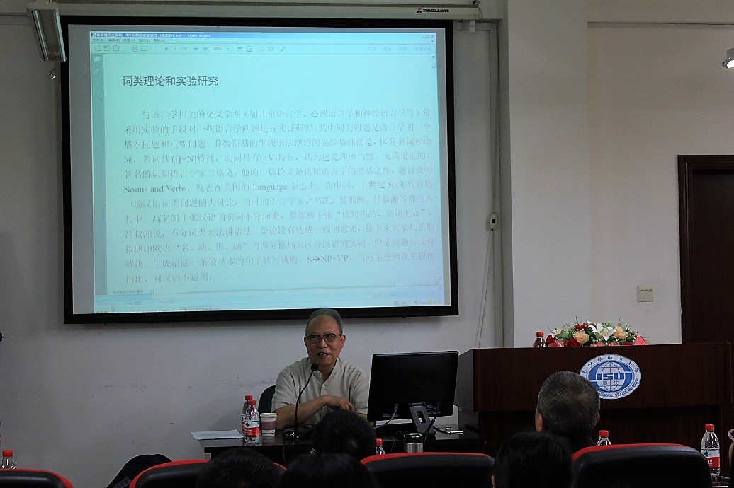 首先,沈先生指出有关语言的实验研究,从实验设计到对实验结果的解释,都凭借并依赖一定的语言理论,而实验结果又反过来验证、证伪或修正已有的理论。在语言学诸多问题中,词类问题是一个虽基本但非常重要的问题,其中名词和动词的区分一直是各国语言学家长期争论的话题,并逐渐形成了以下四种代表性观点:高名凯主张汉语的实词不分词类;黎锦熙主张“依句辨品,离句无品”;吕叔湘主张词类是语法的基础;朱德熙极力汉语动词和形容词的“名词化”,该观点是词类大讨论之后最重要的理论突破,主张汉语的词类区分应遵循“简单原则”,所有的动词都可以不经任何形态变化而做主宾语。其次,沈先生以词类研究的一组成人脑成像实验和一组儿童感知实验为例,指出了语言理论对于语言实验的重要性,研究依凭不同的理论将会导致不同甚至截然相反的实验结果。接下来,沈先生提到“名动分立”和“名动包含” 的词类模式 ,并指出,印欧语是“名动分立”模式,而汉语是“名动包含”模式。紧接着,沈先生从英汉差异的 ABC 、偏侧分布 、汉语零句和流水句、“实现性” 隐喻和“构成性” 隐喻 、其他语言的 Nominalism(名词为本)、词类演化、循环模型等七个方面列举了国内外不同语言关于名词和动词关系研究的理论进展,从事实和理论上论证了汉语是“名动包含” 的词类格局。最后,沈先生总结到,许多实验结果的差异是由实验的任务和方法造成的,但有些看似有差别甚至相反的实验结果,是由于受传统语法理论的束缚而得不到合理的解释。因此,实验研究要凭借、依托一定的语言理论,同时也在呼唤语言理论的更新,从而反过来改进语言的实验研究。