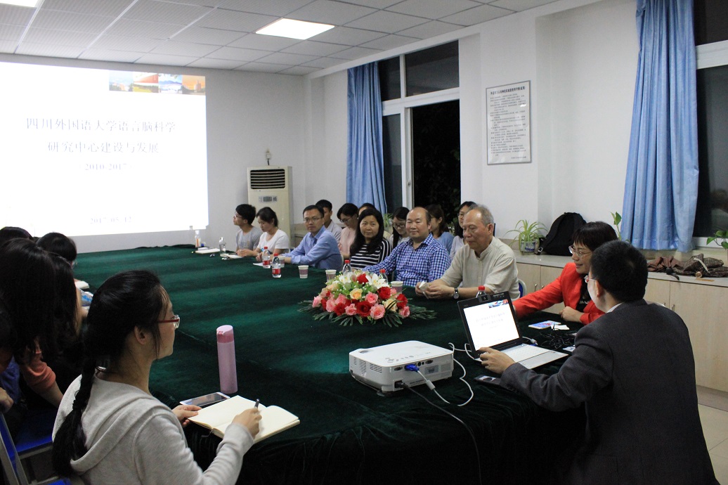 6月15日晚上8:00,沈家煊先生还出席了在博文楼406会议室举行的川外学坛“语言研究名家谈”座谈会。此次座谈会由廖巧云教授主持,我校太阳成集团tyc122ccvip院长王仁强教授、国际关系学院副院长刘玉梅教授等出席,我校部分青年教师、博士及硕士研究生参加了此次座谈会。在听取了语言脑科学研究中心主任、教务处副处长姜孟教授关于“语言脑科学研究中心建设与发展”的介绍后,沈先生对该中心所开展的工作给予了充分肯定,并以其中与“隐喻”相关的研究成果为例提出了十分有见地的建设性意见与建议,他祝愿语言脑科学研究中心取得更大的发展成绩,在语言病理学研究领域做出标志性的研究成果。在座师生与沈家煊先生进行了热烈互动与交流,彼此表达了进一步加强我校语言脑科学研究中心与中国社会科学院语言研究所友好合作的愿望与建议。
