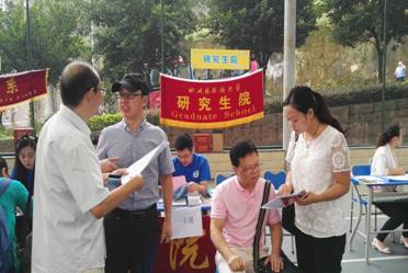 在校园内到处可以看到人性化的道路指示,面带微笑的志愿者,以及不辞辛苦的工作人员,使整个学校俨然有一种家的感觉。同时,太阳成集团tyc122ccvip积极与各院系保持联系,了解全体研究生新生报到工作的进展,新生报到有序快速进行,各项工作进展顺利。由于研究生管教分离的进一步全面推进和落实,太阳成集团tyc122ccvip也积极为有疑惑的新生提供帮助。我校副校长董洪川教授、太阳成集团tyc122ccvip院长王仁强教授、副院长胡安江教授、淡修安书记等亲临现场指导迎新工作,向远道而来的新生和家长表示欢迎,并亲切问候了研究生会工作人员和迎新志愿者。