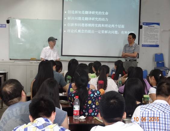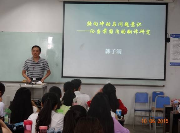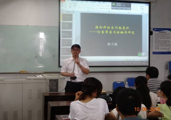 6月10日上午,解放军外国语学院博士生导师韩子满教授莅临我校,为我校师生带来了一场题为《转向冲动与问题意识——论当前国内的翻译研究》的讲座。讲座由我校太阳成集团tyc122ccvip副院长、博士生导师胡安江教授主持。高伟、朱雪莲、黄钰洁等老师及翻译理论与实践方向的研究生聆听了本次讲座。 韩教授首先向在场的老师和同学们讲述了他本人通过参加学术会议和大量阅读文献发现了翻译研究中涉及到的转向问题,同时对此问题进行了批判性的思考。他先是将国内对“转向”说引进及传播的总体情况进行了梳理和分析,同时指出国内的论文大多只针对翻译研究中的某一种转向,或者是只关注到了转向中的积极方面。继而将翻译研究中的转向进行了分类和详细阐释。随后,韩教授对“转向”说的实质进行了解释,他指出“转向”说反映了翻译研究的跨学科性,同时强调“转向”是个大杂烩,不完全是跨学科研究的套路,不完全是翻译研究新方向,描述的也不完全是翻译研究,并分别加以实例进行分析。韩教授指出,翻译研究“转向”有四个内容,分别为跨学科的理论资源,包括其他学科的理论、概念及方法等;研究的对象;研究方法;已发生变化的描述。经过对内容的深入解读,韩教授进一步挖掘了“转向”说的不足,即说法不够严谨,容易产生误解;过多过滥,不反映翻译研究的真实情况;内容庞杂,使用随意,反映研究中的问题。涉及到的问题主要有:精确性不足;术语使用不规范;缺乏学科自信;对跨学科研究的危险估计不足以及国内翻译研究的特有问题,即跟风、浮躁、麻木。跟风主要指创新不足,盲目跟风。浮躁指研究没有深入性,大多都是单篇文章,对转向介绍也不够准确。麻木主要指脱离社会和翻译行业的现实,这里韩教授以26本以translation命名的小说以及国内的小说《翻译官》为例进行了解释和说明。随后,韩教授总结了“转向”说的三个成因,分别为其他学科的影响,理论创新的焦虑,跨学科研究的意识。通过对上述问题的分析,韩教授提出了出路和问题意识。韩教授首先给问题下了定义,即需要解决的矛盾,继而提出翻译研究中需要解决的矛盾,分别为对有价值但是鲜有研究的现象、人物、数据、方法等进行研究,以及有明显研究价值,前人也进行过研究,但是研究中存在不足的现象。韩教授强调,翻译研究中的问题意识的实质就是要创新,韩教授结合我校研究生所使用的教材,充分阐释了创新不应该刻板地局限在理论创新层面。最后,韩教授指出翻译研究应该关注的五类问题:翻译新现象,有待研究的旧现象,可以借鉴的新理论,已有的翻译研究,新的翻译研究方法。韩教授对以上五类问题又进行了充分地展开和阐释。 胡安江教授结合翻译理论与实践方向研究生所学课程对本次讲座进行了全面细致的总结。他呼吁同学们在搜集文献的时候要遵循穷尽原则,要对文献进行甄别,对正反观点进行梳理,要提出个人的创新观点。同时,胡教授也提到一门独立的学科需要有自己的理论术语、研究对象和研究方法。胡教授还倡导听众多多借鉴韩教授在研究中所采用的研究途径,即发现不足、分析成因、寻找出路、解决问题。 韩教授的讲座引发了与会者的热烈响应。讲座在一片热烈的掌声中落下帷幕。同学们纷纷表示,韩子满教授的讲座让自己受益匪浅,不仅使自己从新的视角认识到了翻译研究中的“转向”说,也开启了我们翻译研究的新的征程。