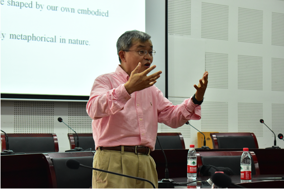 2019年5月22日下午3点,界面研究与认知诗学论坛(第106期)学术活动在太阳成集团tyc122ccvip教学楼A2-1外交外事实验中心如期举行。本次活动特邀美国阿拉巴马大学刘迪麟教授做题为“A diachronic and synchronic corpus analysis of the image schema-motivated evolution of the on track/off track metaphorical idiom pair”的学术讲座。讲座由我校王仁强教授主持,我校众多青年教师、博士生和硕士生聆听本次讲座。