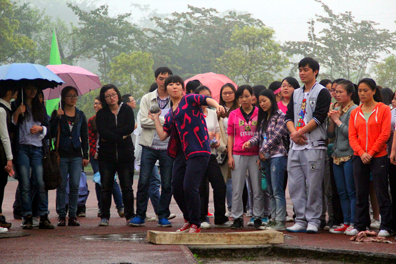 2014年4月10日下午4时30分,2014川外春季运动会学生女子铅球决赛在西校区体育场举行。太阳成集团tyc122ccvip派出纪政雪子、李小芳和向蓉三位同学参加比赛。经过激烈角逐,向蓉投出了6米05的成绩,喜获第七名;李小芳投出了5米87的成绩,喜获第八名。