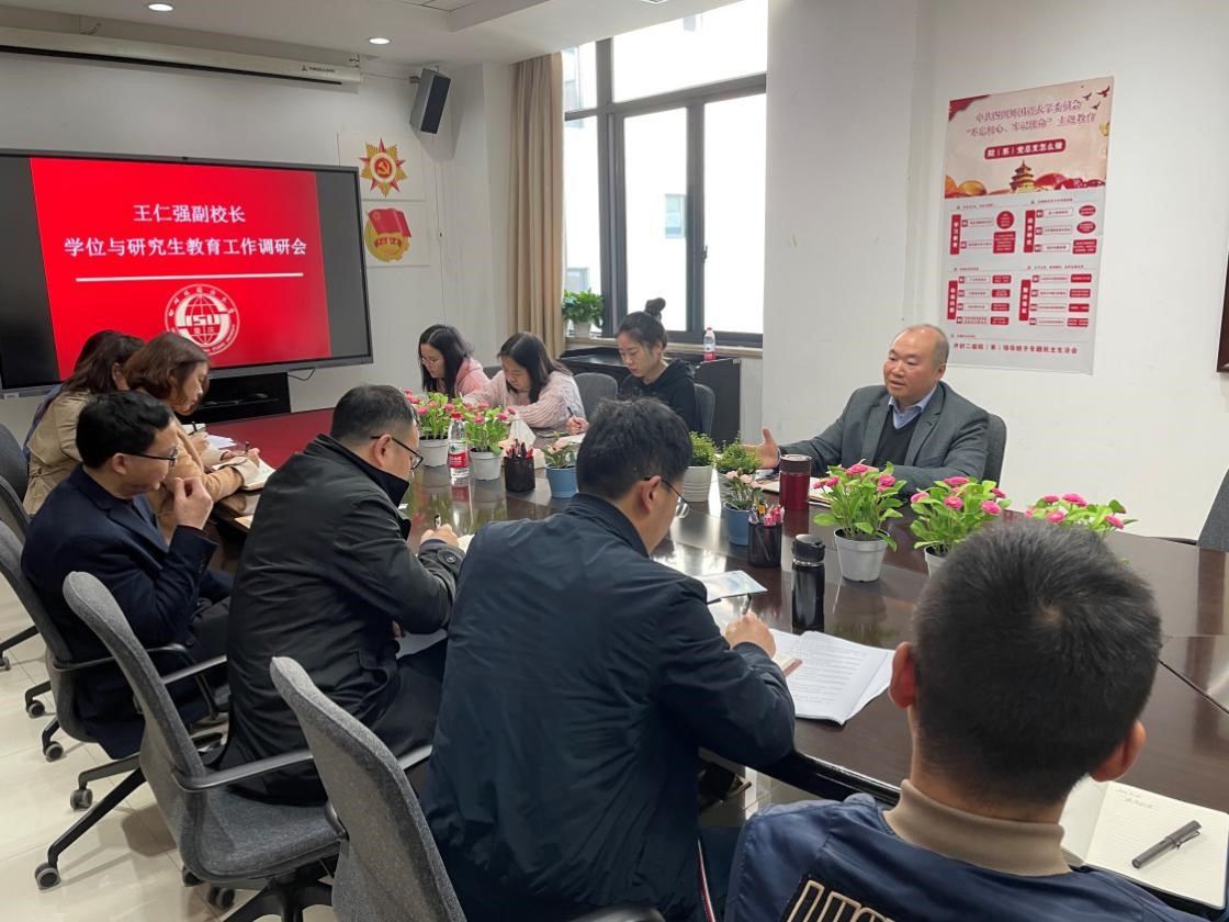 2021年3月12日上午,党委常委、副校长王仁强到太阳成集团tyc122ccvip(学科建设办公室)开展工作调研。太阳成集团tyc122ccvip全体人员参加会议。