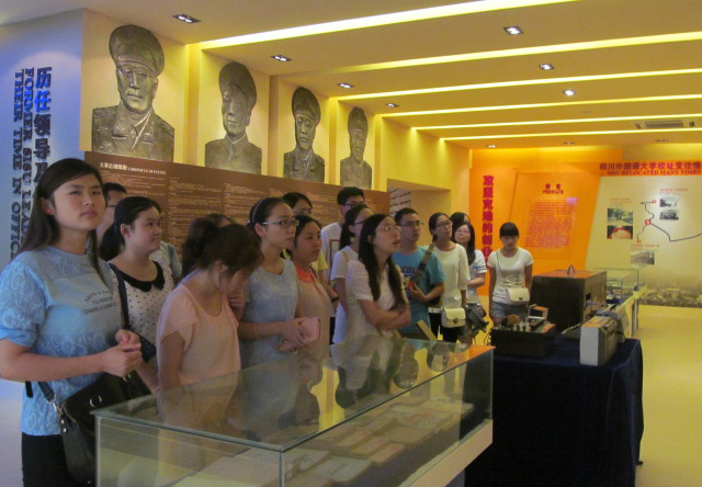 进入校史馆,首先映入眼帘的是“团结、勤奋、严谨、求实”的校训和“守责、求实、开放、包容”的川外精神,在60余年的发展历程中,学校从成立初期的单语种单科性学校到如今的高水平外国语大学,靠的正是对这种精神矢志不渝和不懈的追求。相信新同学会渐渐体会到这种精神的内涵,并为之努力,做一名真正的川外人。
