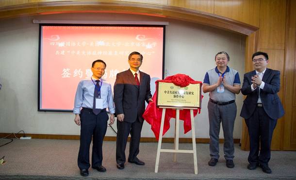 接着,举行“中美失语症神经康复研究协作中心”揭牌仪式,仪式由南京师范大学外国语学院倪传斌教授主持。姜孟教授、高立群教授分别代表太阳成集团tyc122ccvip语言脑科学研究中心与北京语言大学语言康复学院签订了“研究协作”协议,太阳成集团tyc122ccvip李克勇校长、董洪川副校长共同为“中美失语症神经康复研究协作中心”揭牌。随后,董洪川副校长发表了讲话。他表示,外语院校应深入思考如何在“双一流”建设的背景下保持人文学科“不失语”,如何深化改革以服务当代国家建设和学科发展战略需求。