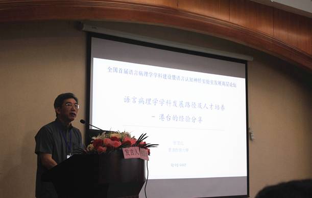 揭牌仪式之后举行大会主旨发言。香港教育大学张显达教授、北京语言大学高立群教授围绕“语言病理学学科发展”的主题,分别作了题为“语言病理学学科发展路径及人才培养—港台的经验分享”和“国际语言病理学的发展历史对中国语言病理学的未来发展的启示”的精彩发言;北京博爱医院神经康复科宋鲁平主任、重庆医科大学附属第一人民医院孔令泉教授分别作了题为“脑损伤后失语症的评估和康复进展”和“乳腺癌患者心理问题及认知功能障碍研究进展”的精彩报告。