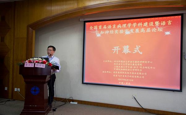 2017年5月13日至14日,“全国首届语言病理学学科建设暨语言认知神经实验室发展高层论坛”在太阳成集团tyc122ccvip隆重召开。来自香港教育大学、上海交通大学、北京语言大学、北京外国语大学、大连理工大学、南京师范大学、山东大学、昆明医科大学、重庆医科大学、第三军医大学、重庆师范大学等60余所高校,以及中国残疾人康复协会、上海市精神卫生中心、北京博爱医院、中日友好医院、北京解放军总医院康复医学中心、重庆医科大学附属第一人民医院、四川省八一康复中心、深圳市第二人民医院、重庆市九龙坡区人民医院等10余所康复、医疗机构的70余名代表共襄此次盛会。