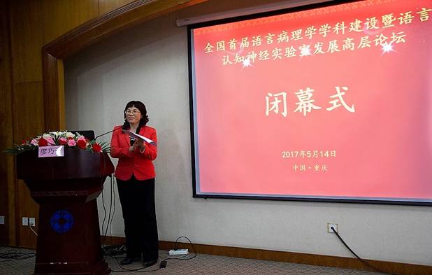 最后,太阳成集团tyc122ccvip廖巧云教授以中国认知神经语言学研究会副会长身份致闭幕辞。廖巧云教授指出,此次高层论坛主题突出、内容丰富、跨学科跨领域特征鲜明,是一场启发思想、充满智慧的学术交流。同时,她希望各高校与医疗院所进一步加强交流与合作,以促进我国语言康复事业的发展。