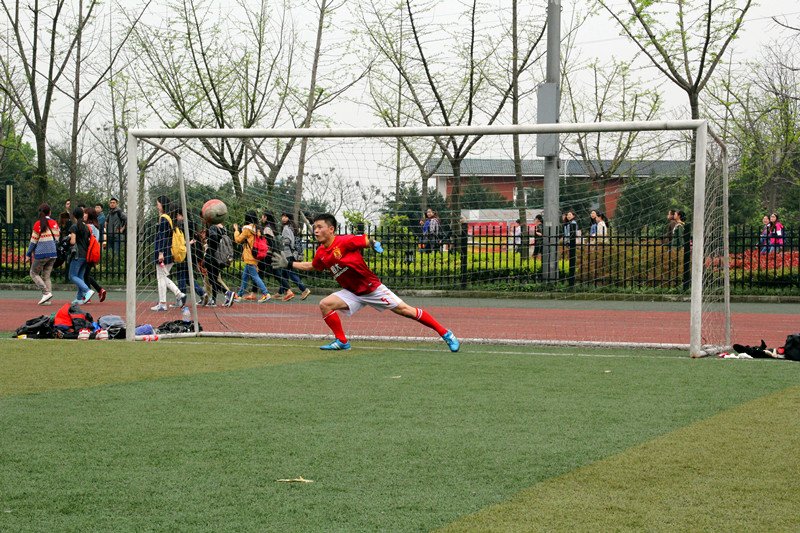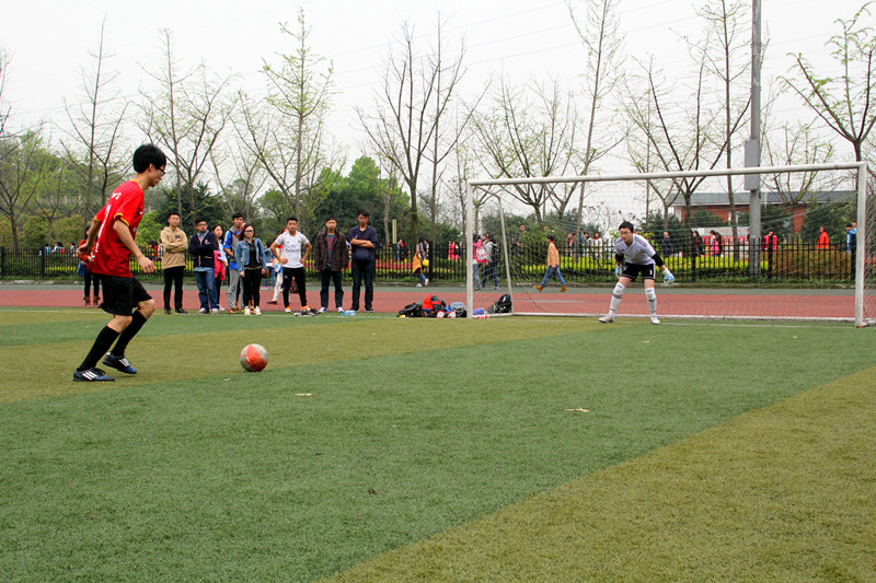 2014年4月2日中午12:50,太阳成集团tyc122ccvip第一届学生男子足球比赛第三、四名争夺赛在西校区体育场开战。太阳成集团tyc122ccvip男队对阵国商低年级男队。双方在比赛常规时间战成1:1,将比赛拖入到点球大战。最终研院男足以5:6惜败于国商低年级队,获得本届川外男足比赛的第四名。