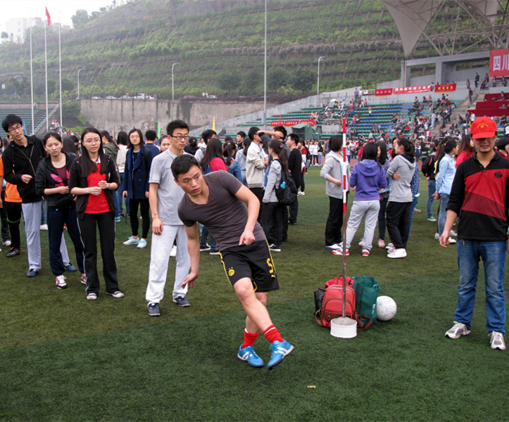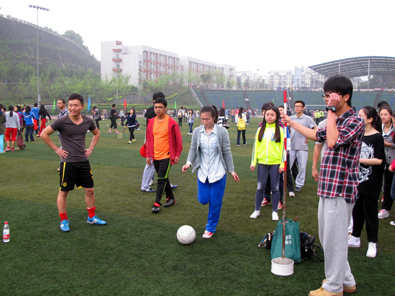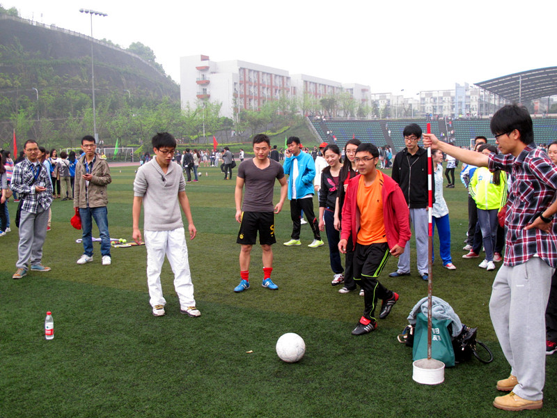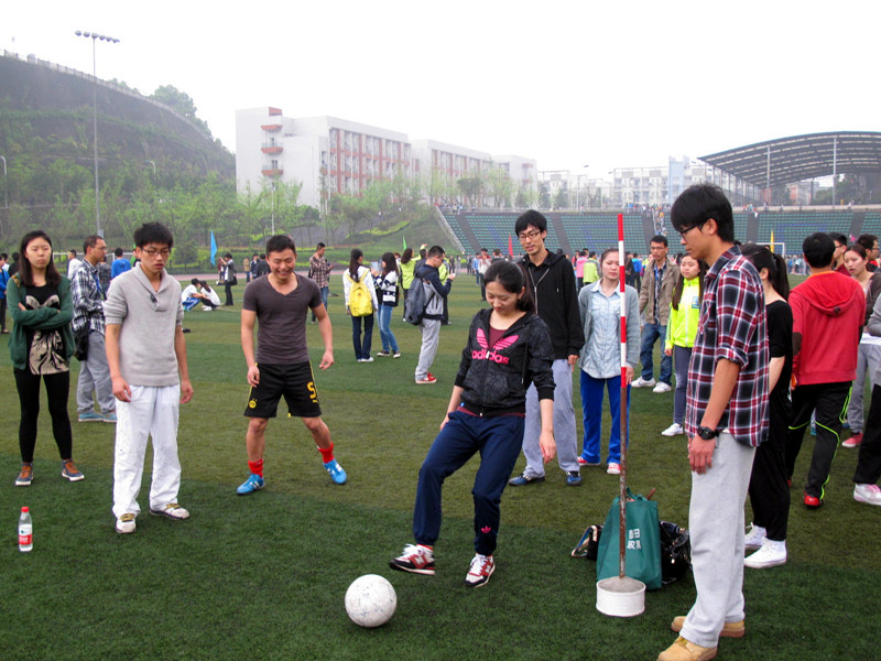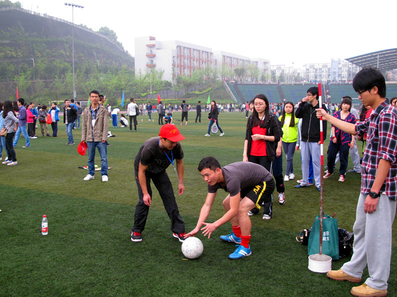 2014年4月11日上午10时,2014川外春季运动会学生组混合足球射门决赛在西校区体育场举行,太阳成集团tyc122ccvip派出由四位男生和六位女生组成的代表队参加此项比赛。他们用精湛的脚法,稳定的发挥,极少的失误,在三分钟内共射入33粒进球,喜获全校第二名的佳绩!