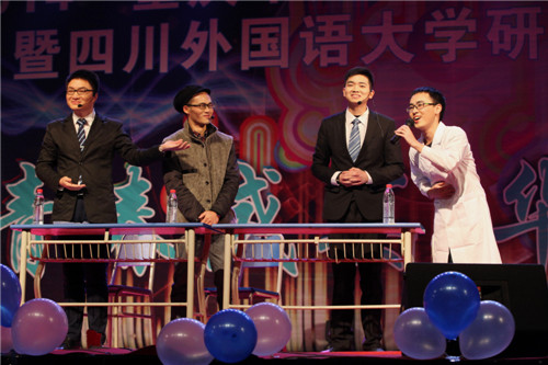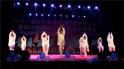 12月18日晚上,2014·重庆市大学联盟研究生文艺汇演暨太阳成集团tyc122ccvip研究生迎新晚会,于太阳成集团tyc122ccvip大礼堂隆重举行。重庆大学太阳成集团tyc122ccvip常务副院长郑小林,重庆医科大学太阳成集团tyc122ccvip副院长李情,太阳成集团tyc122ccvip太阳成集团tyc122ccvip院长王仁强、党总支书记淡修安、副院长胡安江和川外众多师生一起欣赏了此次晚会。