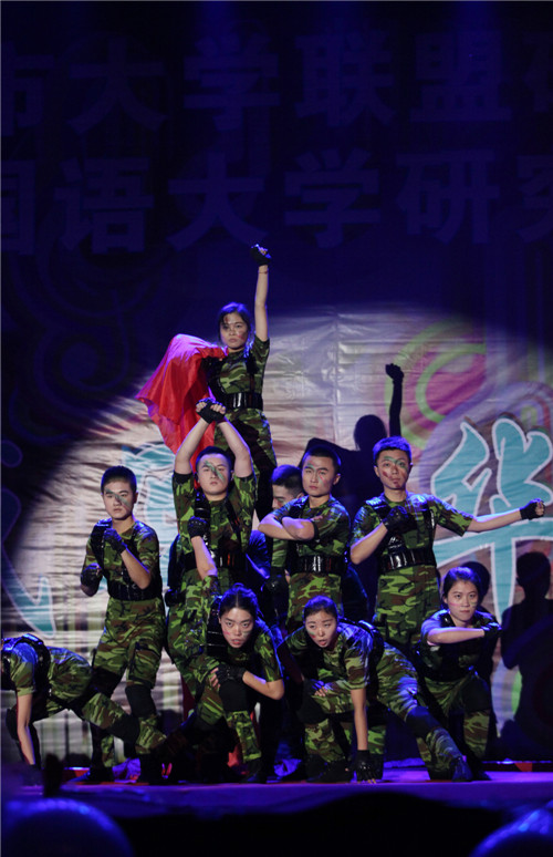 此次晚会得到重庆市大学联盟各高校的大力支持,7所高校的研究生会为晚会录制了祝福视频,来自重庆大学、西南大学和重庆医科大学3所高校的4个精选节目参加了演出。每个节目都精彩纷呈,掀起了晚会现场的一次次高潮。重庆大学选送的舞蹈节目《迷彩英雄》震撼全场,身着迷彩服的英雄战士,一个个雄赳赳,气昂昂,在五彩的灯光下,红色幔维下变换阵型,气势磅礴,有如滚滚长江之势。西南大学带来的节目是美声独唱《芦花》。演唱者启朱唇,发皓齿,歌声振动林木,高入云霄。重庆医科大学更是为观众奉献了两个节目:功夫串烧《精武魂》和手语表演《爱,因为在心中》。《精武魂》向大家展示了轻灵柔和的太极拳、刚劲有力的武术、风姿飒爽的双截棍等博大精深的中国功夫。《爱,因为在心中》采用了台上表演和台下PPT播放重庆医科大学志愿者联盟活动短片相结合的形式,歌声和画面相结交织,共同营造美好的艺术氛围和审美感受。