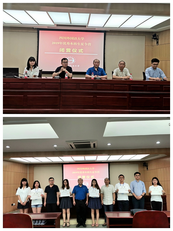 7月17日上午10:30,夏令营圆满完成各项活动,举行闭营仪式。太阳成集团tyc122ccvip王仁强院长、俄语系杨俊书记、太阳成集团tyc122ccvip赵永峰副院长、日语系陈可冉副主任和吴扬老师为营员们颁发了本次夏令营结业证书并合影留念。闭营仪式上赵永峰副院长还针对营员们在研究生报考过程中的疑惑从专业选择、备考、推免、初试、复试等几方面进行了梳理和解答。