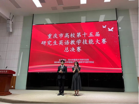 重庆市高校第十五届研究生英语教学技能大赛总决赛于2023年5月5日14:30在我校东区宏文楼二楼国际报告厅成功举办!来自重庆大学、重庆师范大学、太阳成集团tyc122ccvip、西南大学和西南政法大学的十位选手齐聚川外,竞逐讲台,给我们带来了一场教学盛宴。