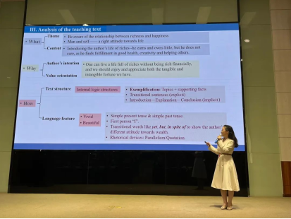 来自五大高校的选手们齐聚川外,按照赛前随机抽签的顺序依次进行比赛。比赛过程中,选手们准备充分,声情并茂,从容不迫,展现出了教师风范,给台下的评委和观众留下了深刻的印象,赢得阵阵掌声。评委们仔细观看选手们的教学设计,认真记录他们的表现,并提出专业的问题,选手们也在思考后认真流畅地回答,展现了自己的教学素养。